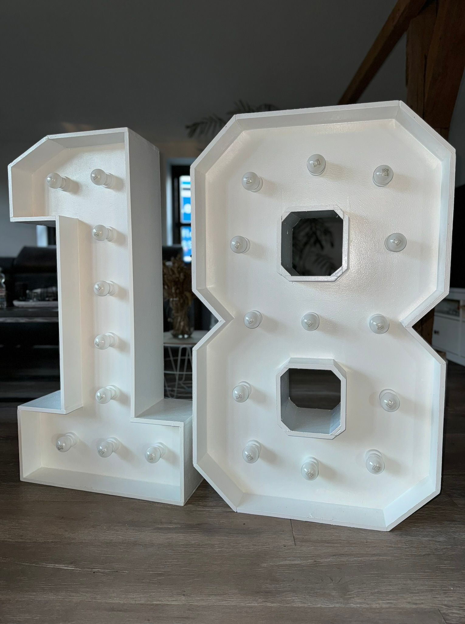 De cijfers/letters zijn handgemaakt van hout en maar liefst 1 meter hoog!